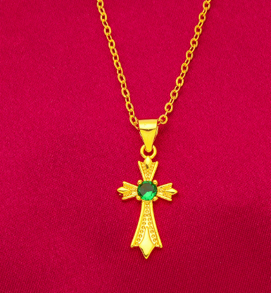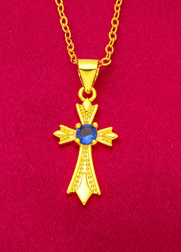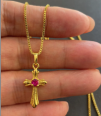 18K Gold Cross Necklace with Pink Rhinestone (One)