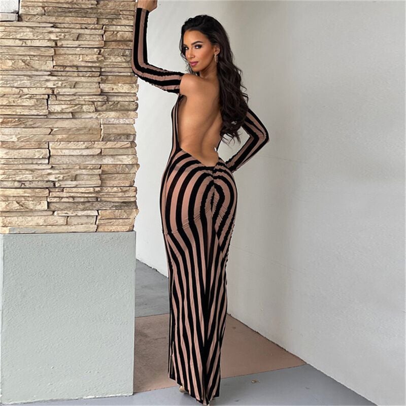 Elegant Slim-fit Long Sleeve Mesh Dress for Women