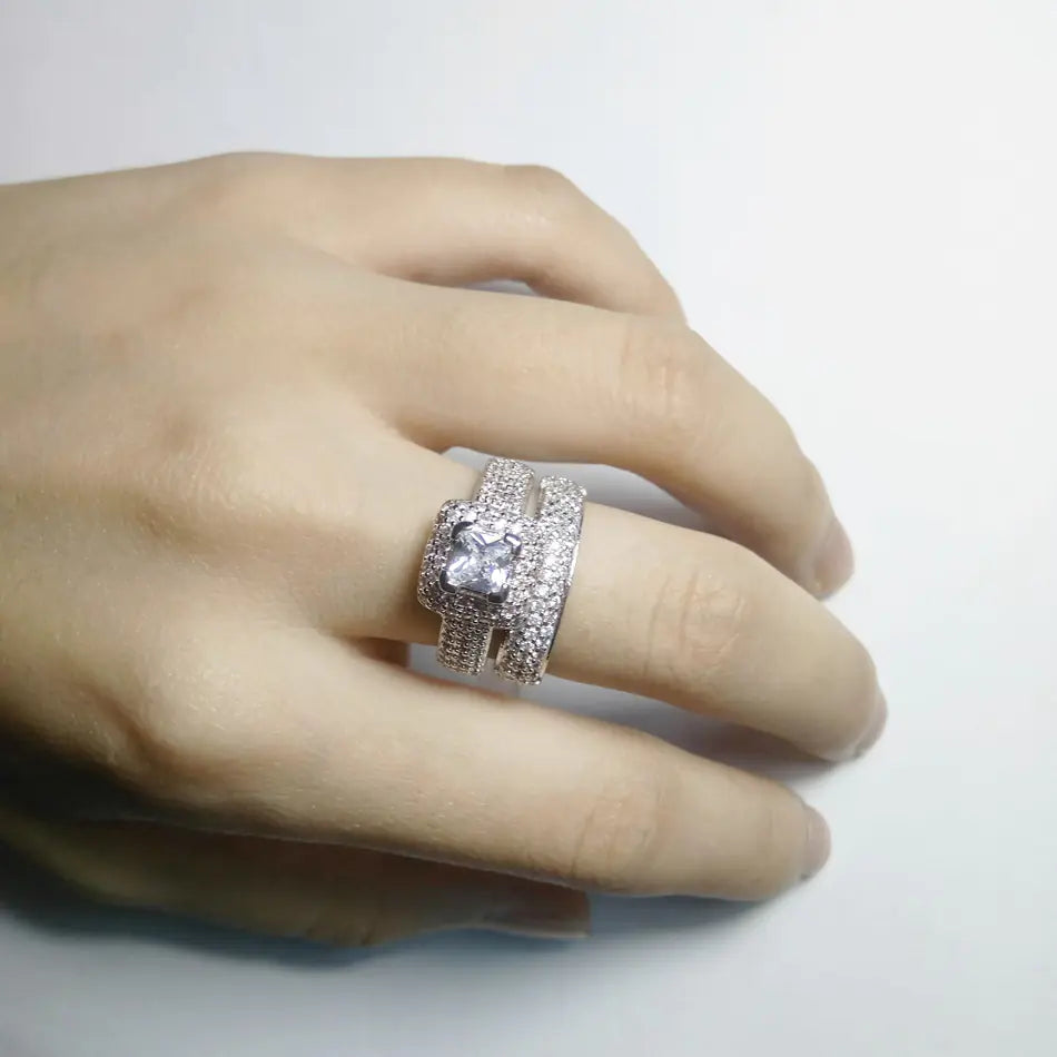 Available in a chic silver color, this ring set is perfect for the modern woman who values elegance and style. Choose from a variety of sizes: Meiwei No. 6, No. 7, No. 8, or No. 9, ensuring a perfect fit for your special day.