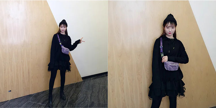 Furry Crossbody Bag for Women - Versatile Japanese Style
