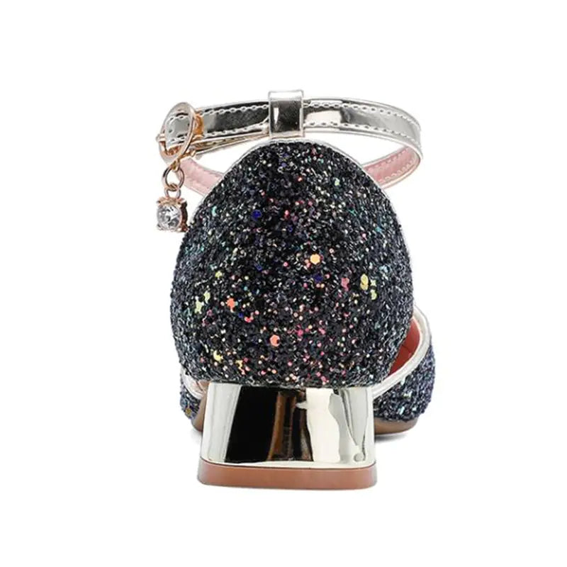 Step into elegance with our stunning Girls Black Leather Shoes Crystal Princess Shoes. Perfectly designed for little fashionistas, these children's high heels are not just shoes; they are a statement of style and grace. Crafted from high-quality artificial PU for the upper and durable rubber for the sole, these shoes offer both comfort and longevity, making them ideal for any occasion.