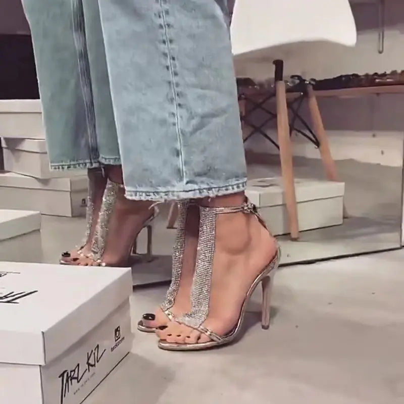 Step into elegance with our stunning women's fashion sandals, designed to elevate your style for any occasion. These sandals feature a chic buckle design and dazzling rhinestones that catch the light beautifully, making them the perfect choice for summer, spring, and autumn outings.